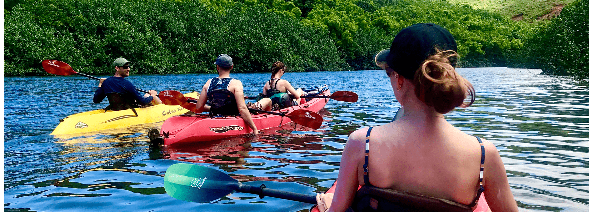 There are a few kayak tours on Wailua river companies to choose from. However, what makes a great experience for the customers is new quality equipment, fantastic customer service, the most knowledgeable and fun guides, proximity to the river, and good time slots for the tours. And we got it all. We are well on our way to becoming the most professional, quality, and nice kayak tour company on Kauai.